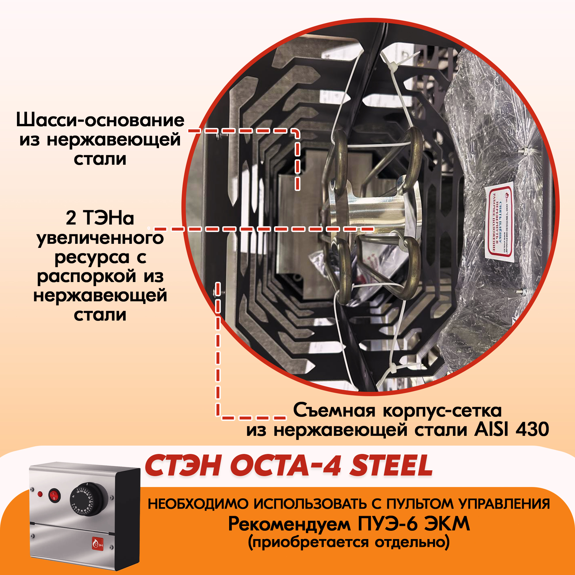 Электрическая каменка СТЭН ЭКМ 4 Octa steel в Перми | Доставка по России