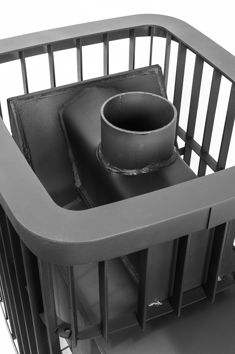 Варвара Каменка является модификацией классической печи Варвара выполненной с кожухом сеткой для закладки камнем. Обкладка камнем позволяет в разы уменьшить излучение, получаемое от металла печи, при этом камень прекрасно аккумулирует тепло и сохраняет его на протяжении длительного времени. Максимальная площадь соприкосновения нагретых элементов печи с камнем – около 1.3м куб.