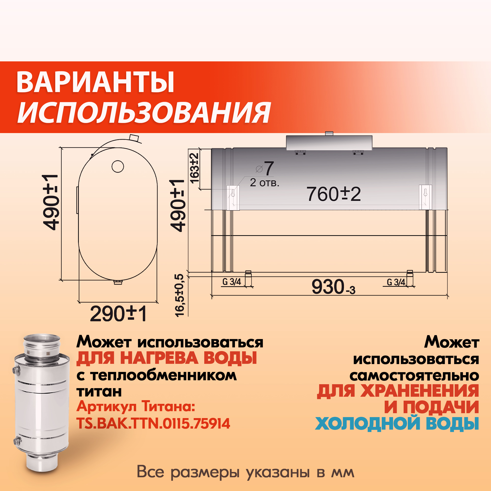 Для перехода к теплообменнику титан для сбора системы «теплообменник + навесной бак» просто наберите артикул TS.BAK.TTN.0115.75914 в поиске Озон.