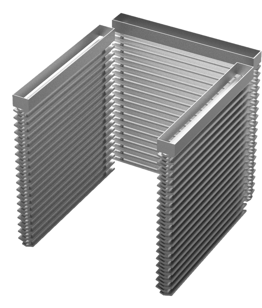 Парогенерирующая кассета Vöhringer состоит из тонких стальных пластин, соединенных вместе. Задача этого банного аксессуара – ускоренное испарение воды из каменки и получение большого объема мелкодисперсного пара.