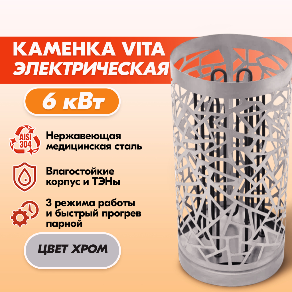 Электрокаменка VITA 6 кВт нерж. в Екатеринбурге | Доставка по России
