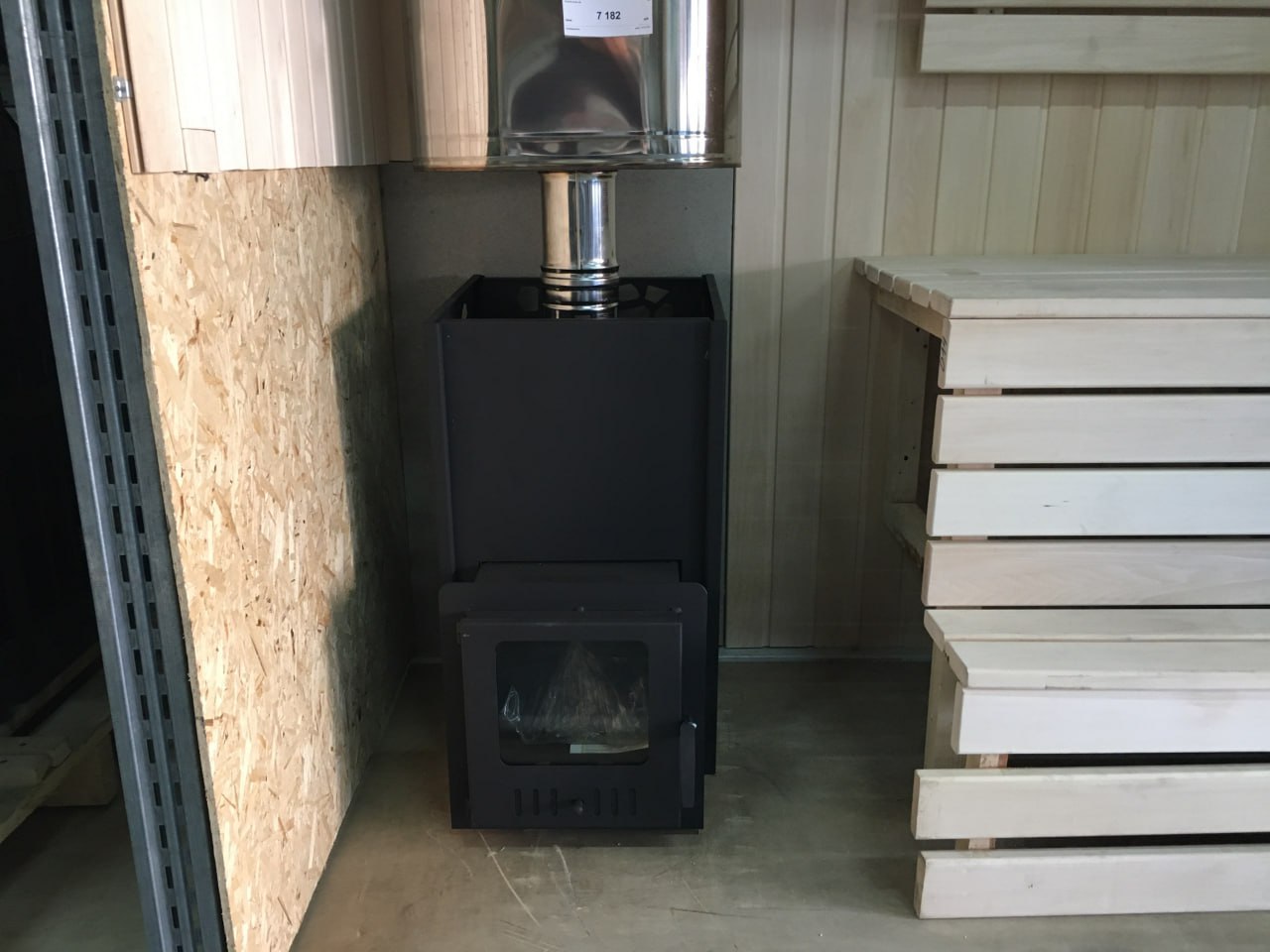При установке печи непосредственно в парной нужно собрать только дымоходную систему и заложить камни, и ваша печь для бани готова.
