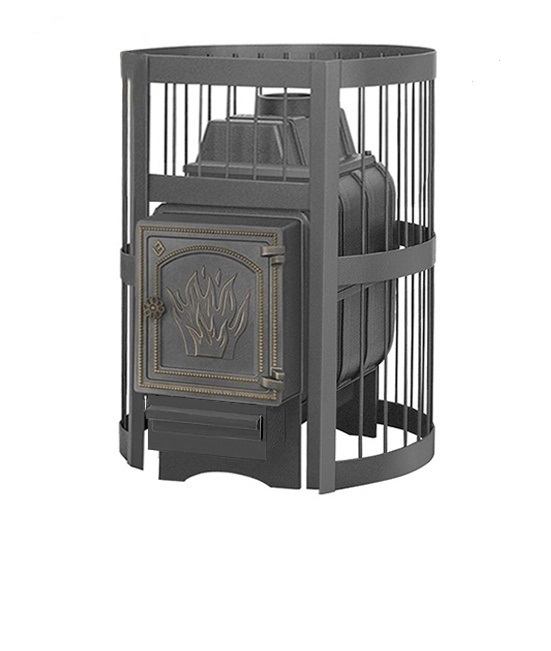 Чугунная долговечная дверца, кожух из прочного металлического прутка, окрашенный термостойкой краской.