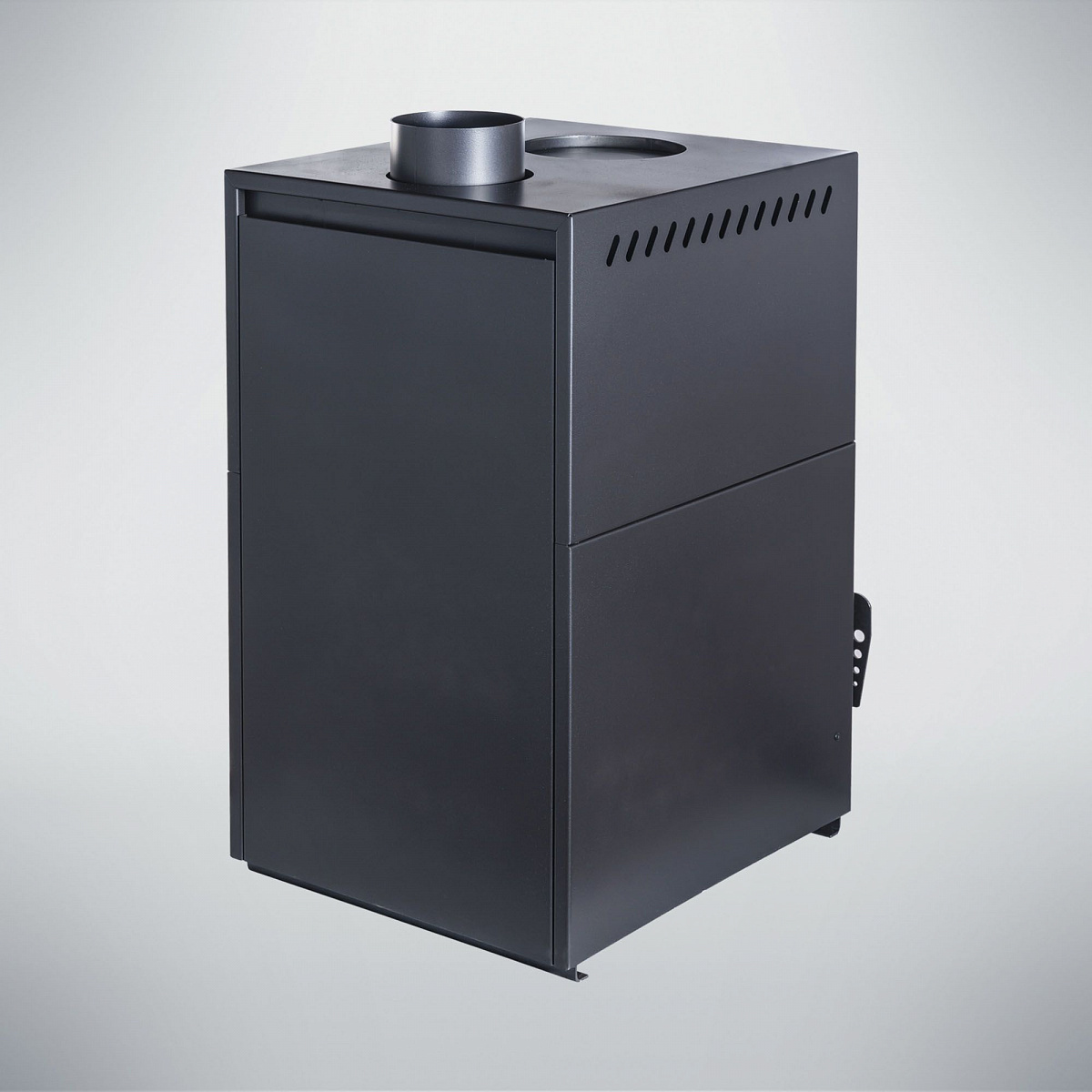 Регулятор подачи воздуха расположен в нижней части топочной дверцы, при смещении регулятора вправо или влево происходит подача или перекрытие воздуха в зону колосника.