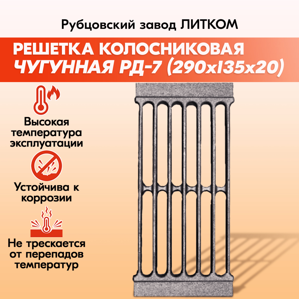 Решетки колосниковые для печи Рубцовского завода ЛИТКОМ производятся из чугуна, который отличается прочностью и долговечностью.