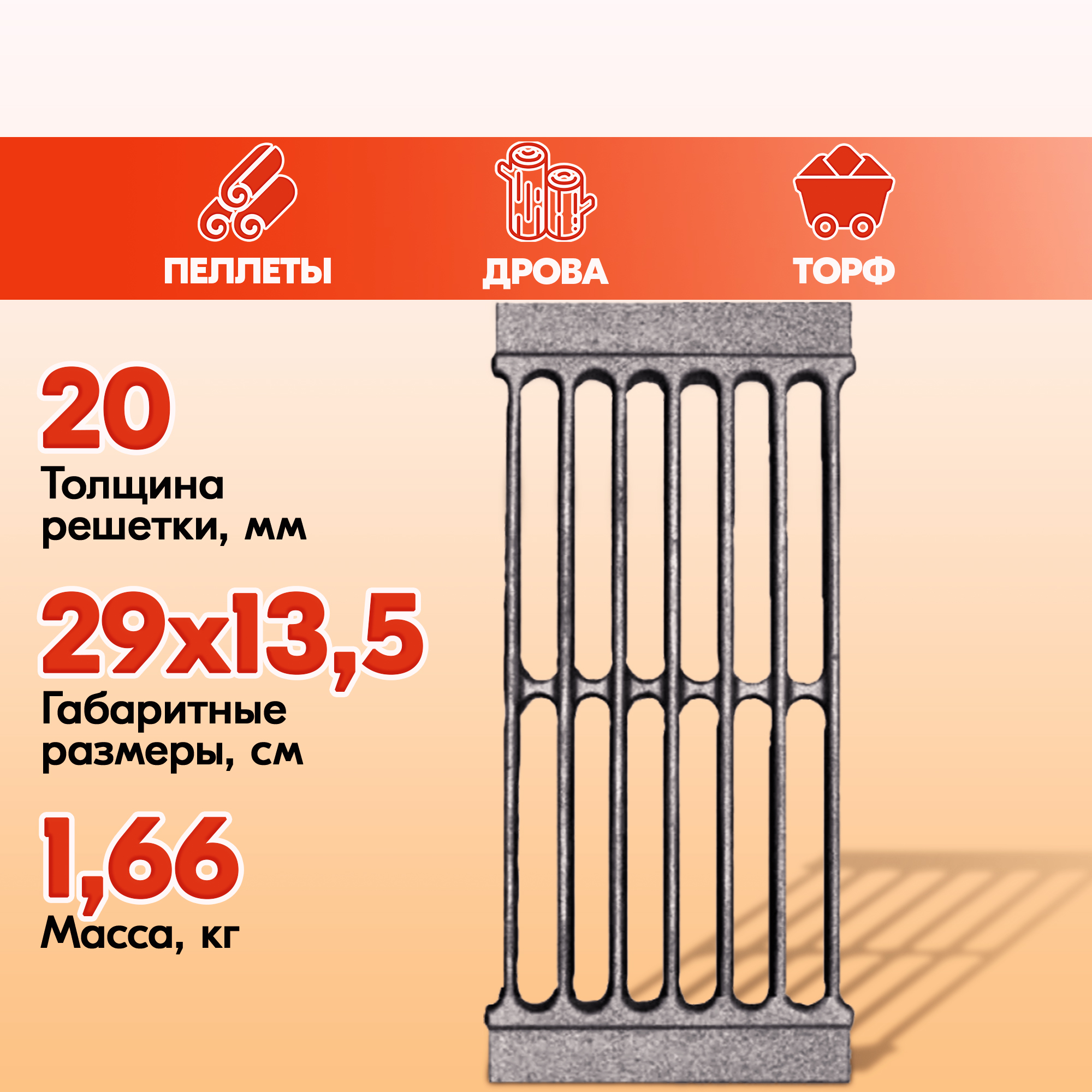 Модели колосниковых решеток для дров от Рубцовского завода ЛИТКОМ также пригодны к топке торфом или пеллетами.