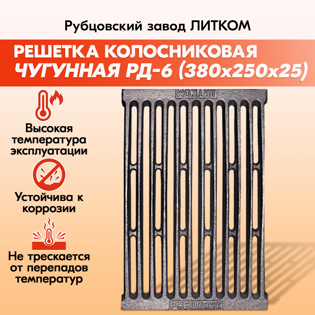 Решетки колосниковые для печи Рубцовского завода ЛИТКОМ производятся из чугуна, который отличается прочностью и долговечностью.