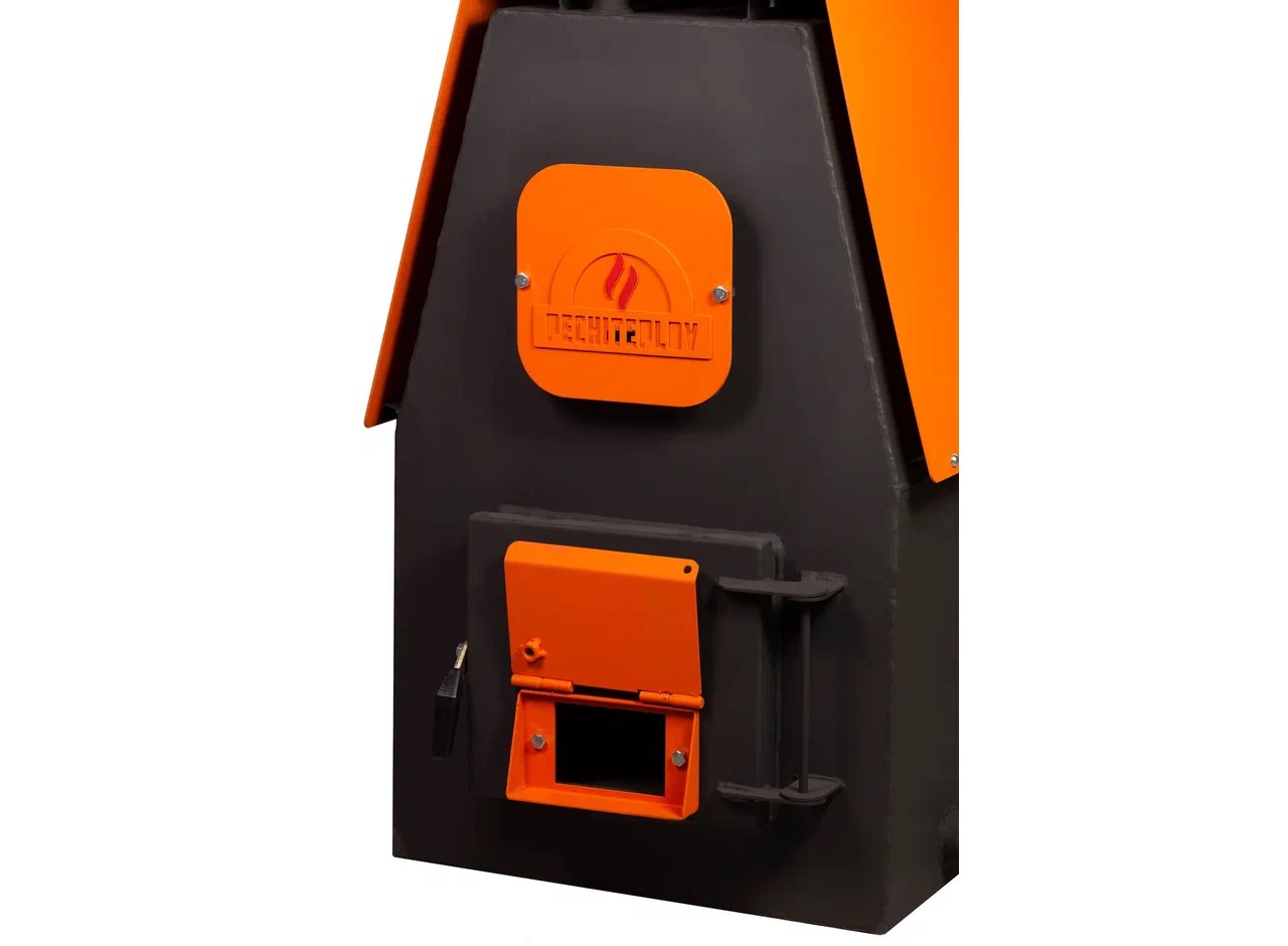 Котел ПЕЧИТЕПЛОВ предназначен для работы в системах водяного отопления малоэтажных зданий при рабочем давлении до 2 атмосфер и максимальной температуре нагрева воды 95°С. Агрегат представляет собой цельносварную конструкцию из стали 09Г2С толщиной не менее 4 мм, с водонаполненными перевалочными листами.