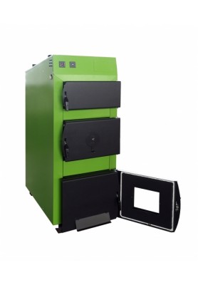 Котлы DRAGON-Bio — это универсальный котел, модельный ряд от 12 кВт до 60 кВт. Высокий КПД котла (до 88% на дровах, до 92% на угле, до 94% на пеллетах). Котел изготовлен из листовой стали 09Г2С (низколегированная сталь толщиной 5 мм выдерживает влияние широкого диапазона температур в условиях многолетних нагрузок и различных деформаций, не теряя пластичности), позволяет увеличить срок службы котла (более 20 лет). Стопроцентная чистка теплообменника, камеры сгорания и конвекционных каналов. Высокая универсальность. Котел укомплектован второй нижней дверцей, одна дверь с отверстием под горелку, вторая глухая с поддувалом для эксплуатации на дровах или угле с регулятором тяги, это позволяет без демонтажа горелки переходить с одного вида топлива на другой. Все дверцы могут быть переставлены и открываться как слева направо, так и справа налево (заводская установка дверок — открывание слева направо) для возможности установки котла как в левом углу котельной, так и в правом. Регулируемая заслонка вторичного воздуха позволяет, осуществлять дожиг пиролизных газов, выделяющийся в процессе горения древесины. В целях безопасности удаления золы перед колосниками установлена заглушка-отбойник для предотвращения выпадения из котла горящих углей при топке дровами или углем.  Котлы имеют увеличенную зольную часть и не требуют частого обслуживания.