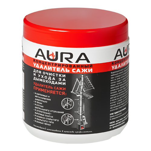 Смолистые отложения в дымоходе мешает нормальной работе отопительного прибора, снижает его эффективность, ускоряет износ, провоцирует коррозию деталей и даже может послужить причиной пожара. Удалитель сажи AURA состоит из смеси специальных кристаллов. Одни ее компоненты в процессе горения дров действуют как катализаторы, превращая содержащиеся в древесине сажи в горючие газы, другие при высокой температуре выделяют газы, которые вступают в реакцию со смолистыми отложениями и разрушают их структуру. Вследствие этого испаряется влага – основной компонент, обуславливающий твердость смолистого налета. Остаются лишь хрупкие остатки сажи, которые осыпаются, термически расщепляются и сгорают.