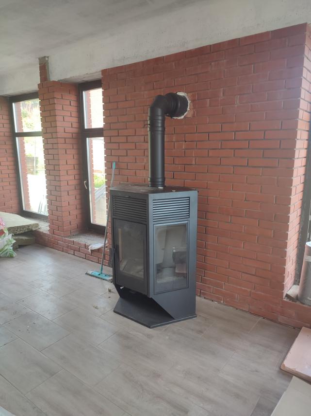 Установка печи-камина Hors-13 и монтаж дымохода Теплов и Сухов